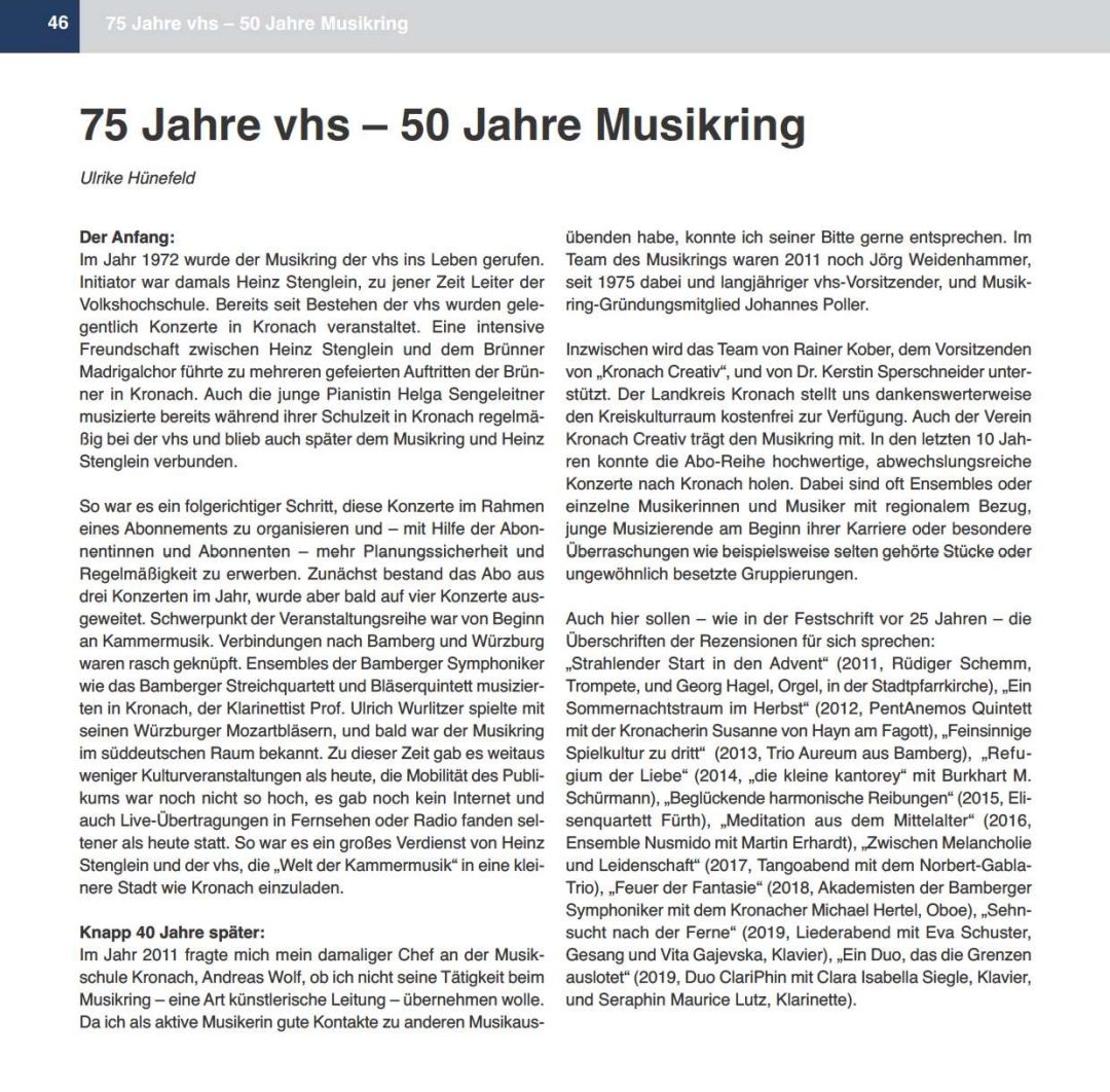 50 Jahre vhs Musikring Kronach | veröffentlicht am 21.09.2022